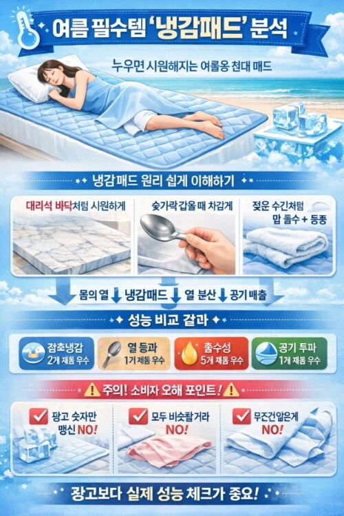 [팩트UP=이세라 기자]최근 기후위기가 심화되면서 더위를 피하고 수면의 질을 높이려는 소비자가 늘면서 냉감패드가 여름철 필수 아이템으로 자리잡게 되었다.
