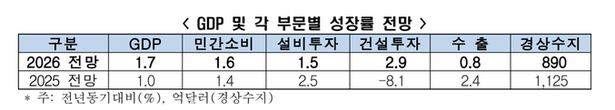 [이슈와 테마]한경연, 2026년 경제성장률 1.7%...반도체와 조선 견조한 회복세