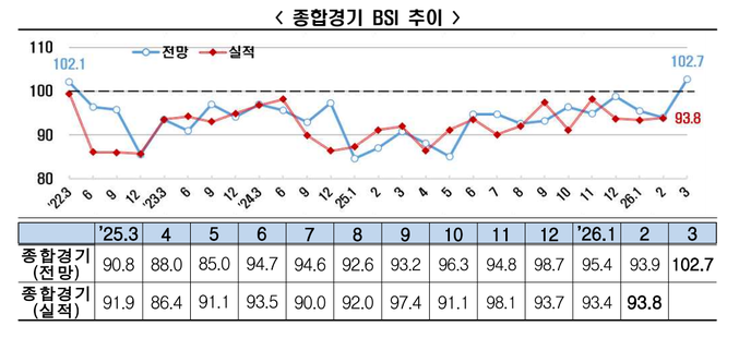 ◆ “3월 BSI 전망치 102.7 기록”